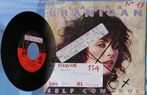 Disco Meraviglia n°17 (Wonder Disc dal 27/04 al 09/05/1984) Cantante: *Laura Branigan* - singolo: *Self Control*. Laura Ann Branigan: di origini Irlandesi e Italiane, ha interpretato il brano Self control, del cantautore Raf. È morta nel sonno il 26/08/2004 a 47 anni, a causa di un probabile aneurisma cerebrale. Self Control è stato anche Disco Revival n°134 dal 18 al 21/02/88.